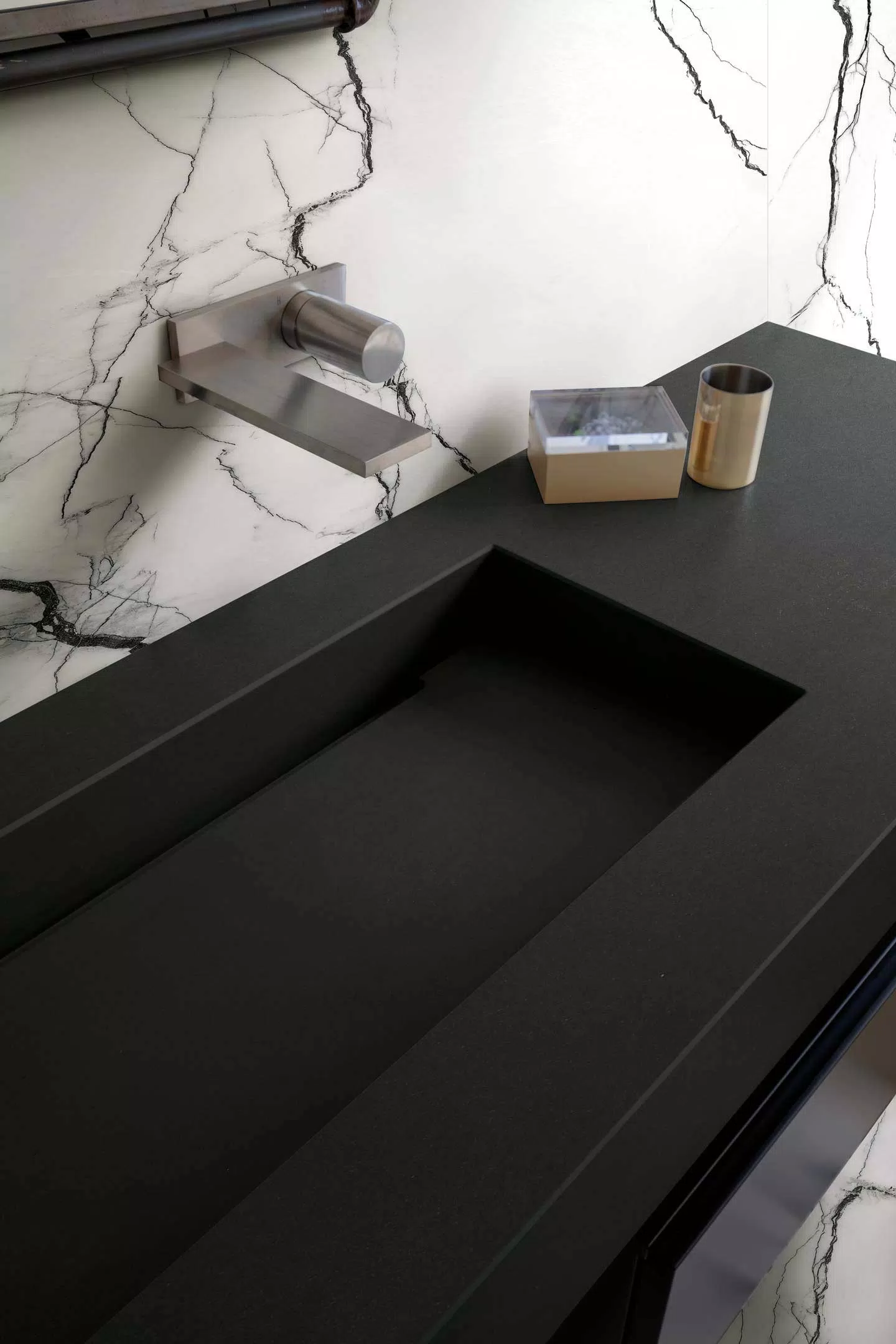 Idea chromatycznej dwoistości B&W ewoluuje w B&W Marble, kolekcję Architectural Design. Czystość koloru dwóch przeciwieństw światła, bieli i czerni, staje się tłem, z którego ożywa „kamienny grandient”, złożony z szeregu mniej lub bardziej regularnych elementów, przypominających żyłkowanie marmuru.