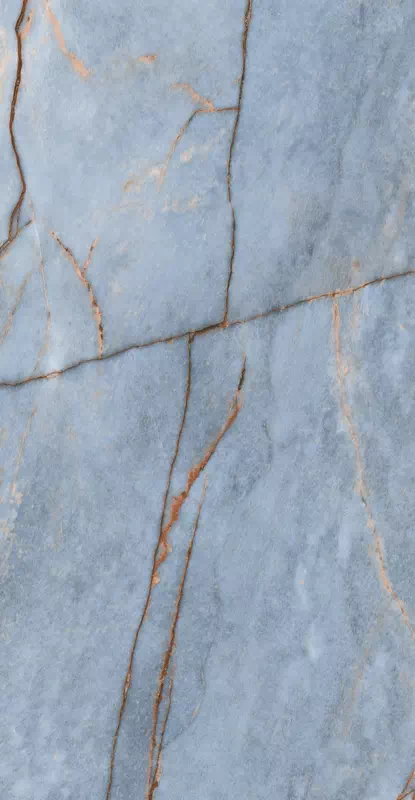 Heritage Azure wyróżnia się bladym, wyrafinowanym niebieskim tłem, na którym wyróżnia się głęboka rdzawa żyła, dzięki czemu idealnie nadaje się do łączenia z ciepłymi kolorami i materiałami.