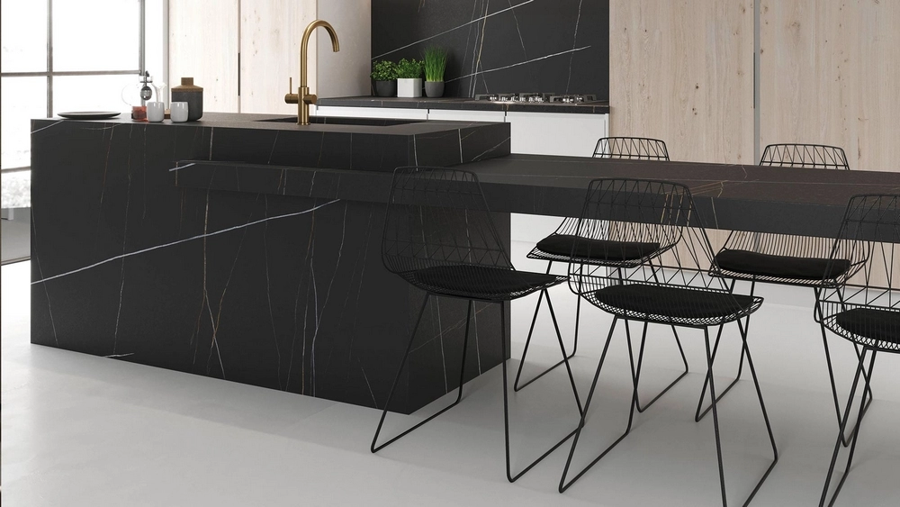 Płytki Azalai imitują kamień Sahara Noir, który jest znanym i cenionym materiałem budowlanym ze względu na swoje wyjątkowe właściwości estetyczne. Sahara Noir cechuje się głębokim, ciemnym kolorem, z wyrazistymi, jasnymi żyłkami lub drobnymi inkluzjami, które nadają mu wyjątkowego charakteru. Azalai oddaje te detale i charakterystykę kamienia Sahara Noir, tworząc unikalne powierzchnie o eleganckim i luksusowym wyglądzie.