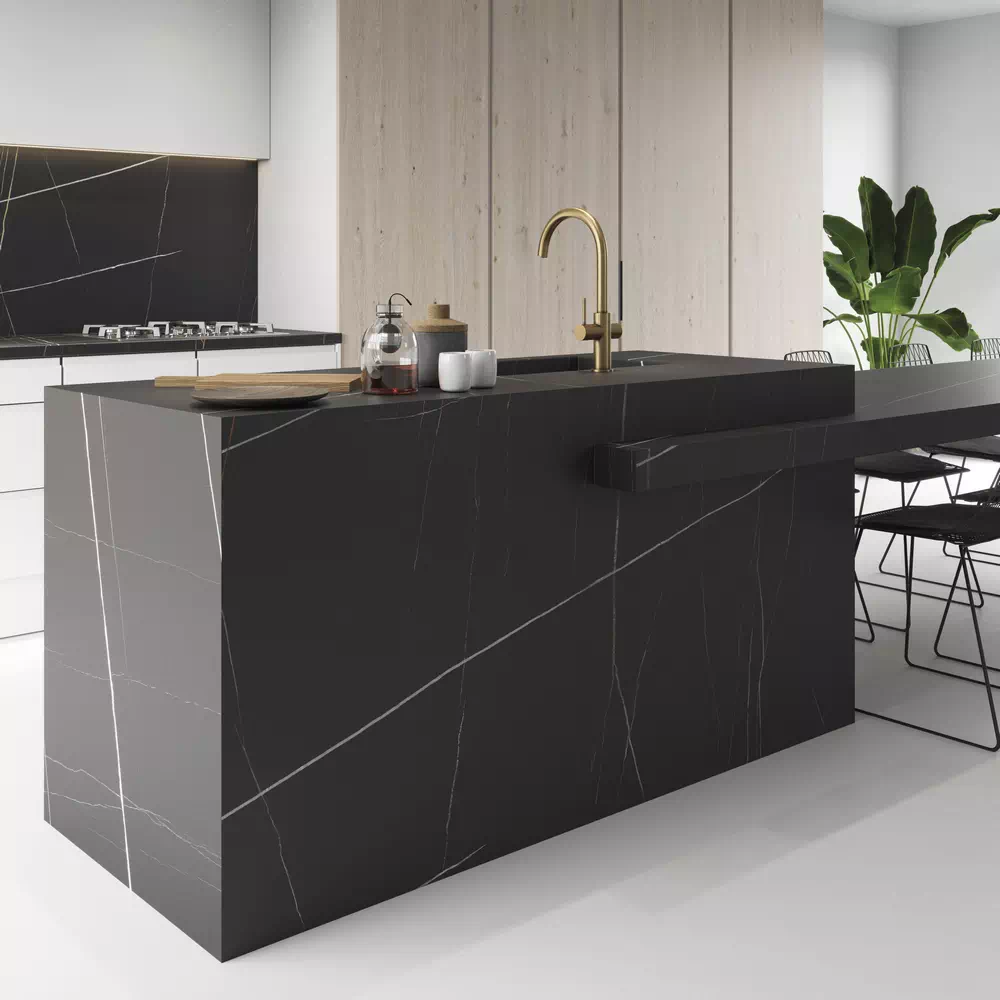 Inalco Azalai wyróżnia się unikalnym wzorem, dodając subtelnej elegancji każdemu wnętrzu. Płyta imitująca kamień w odcieniach czerni pozwala na tworzenie spersonalizowanych aranżacji, które idealnie wpisują się zarówno w klasyczny, jak i nowoczesny styl. Jej gładka powierzchnia ułatwia utrzymanie czystości, co jest istotne zwłaszcza na blatach kuchennych.