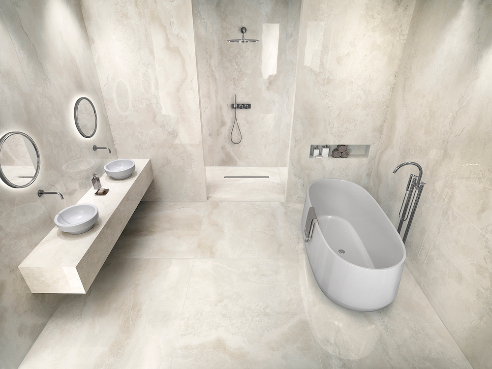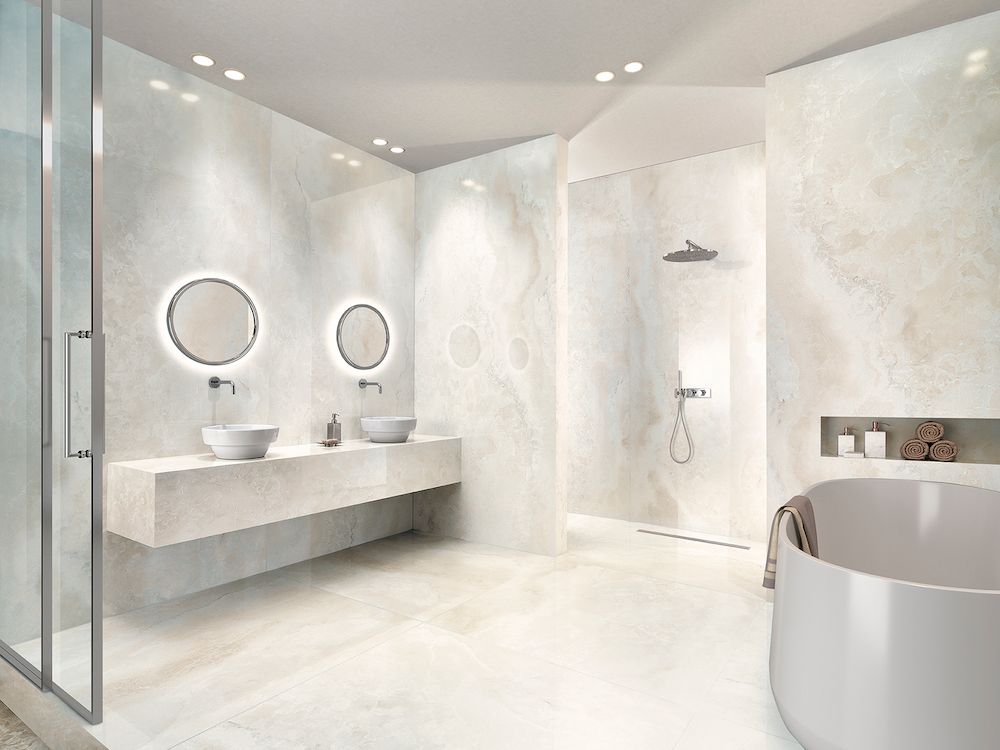 Kolekcja Onyx Diamond doskonale sprawdza się w luksusowych i nowoczesnych aranżacjach. Dzięki wykończeniu typu lucidato, płytki z tej serii idealnie nadają się do przestrzeni takich jak salon, łazienka, kuchnia, a także do zastosowań komercyjnych — hotele, butiki, SPA i eleganckie biura. Lustrzana powierzchnia płytki odbija światło, optycznie powiększając pomieszczenia i nadając im wyjątkowej lekkości. Styl kolekcji łączy w sobie ponadczasową elegancję z nowoczesną prostotą, dzięki czemu doskonale komponuje się zarówno z aranżacjami w stylu glamour, jak i minimalistycznymi wnętrzami opartymi na naturalnych materiałach.
